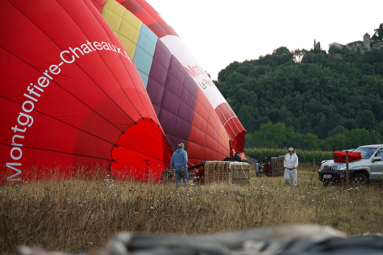 Hot air balloon rides are conducted at dawn and at dusk, to avoid thermal winds and enjoy the most beautiful light; the scheduled times depend on the times of sunrise and sunset, which vary according to the season. The entire experience lasts about three hours, when you’ll be brought back to the meeting point. First, our team drives you to one of our take-off platforms – chosen according to the wind speed and direction – in a 4X4. If your friends would like to watch you take off, they are welcome to do so, but they must respect the safety instructions.